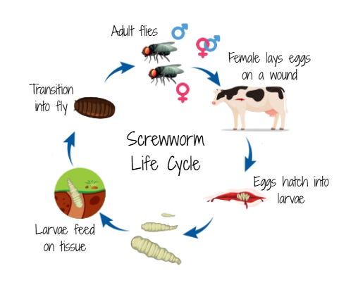 Once NWS flies get established in an area, this cycle repeats indefinitely until the pest is locally eradicated.