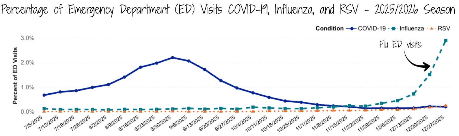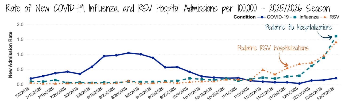 Happy New Year! I hope everyone had a restful, if wet, holiday break. 2026 has started with bang for us in public health. We’re facing radical changes to federal vaccine policy, flooding from winter storms, and surges in seasonal viruses. Let’s start with flooding.